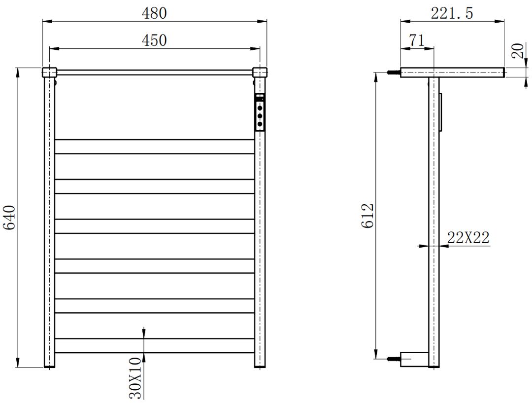 Полотенцесушитель GR2066-9 Цвет: графит Высота: 640мм Ширина: 480мм Материал: нержавеющая сталь Форма: квадратная
